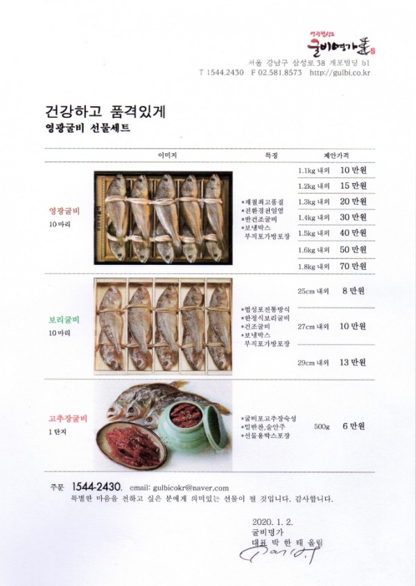영광굴비 가격표 페이지 정보 작성자 영광굴비 작성일20-01-10 13:38 조회7,950회 댓글0건 관련링크 이전글 다음글 목록 글쓰기 본문 안녕하세요.새해 복 많이 받으시기 바라며굴비선물세트 가격표를 안내하오니 참고하시기 바랍니다.감사합니다. 댓글목록 등록된 댓글이 없습니다. 이전글 다음글 목록 글쓰기